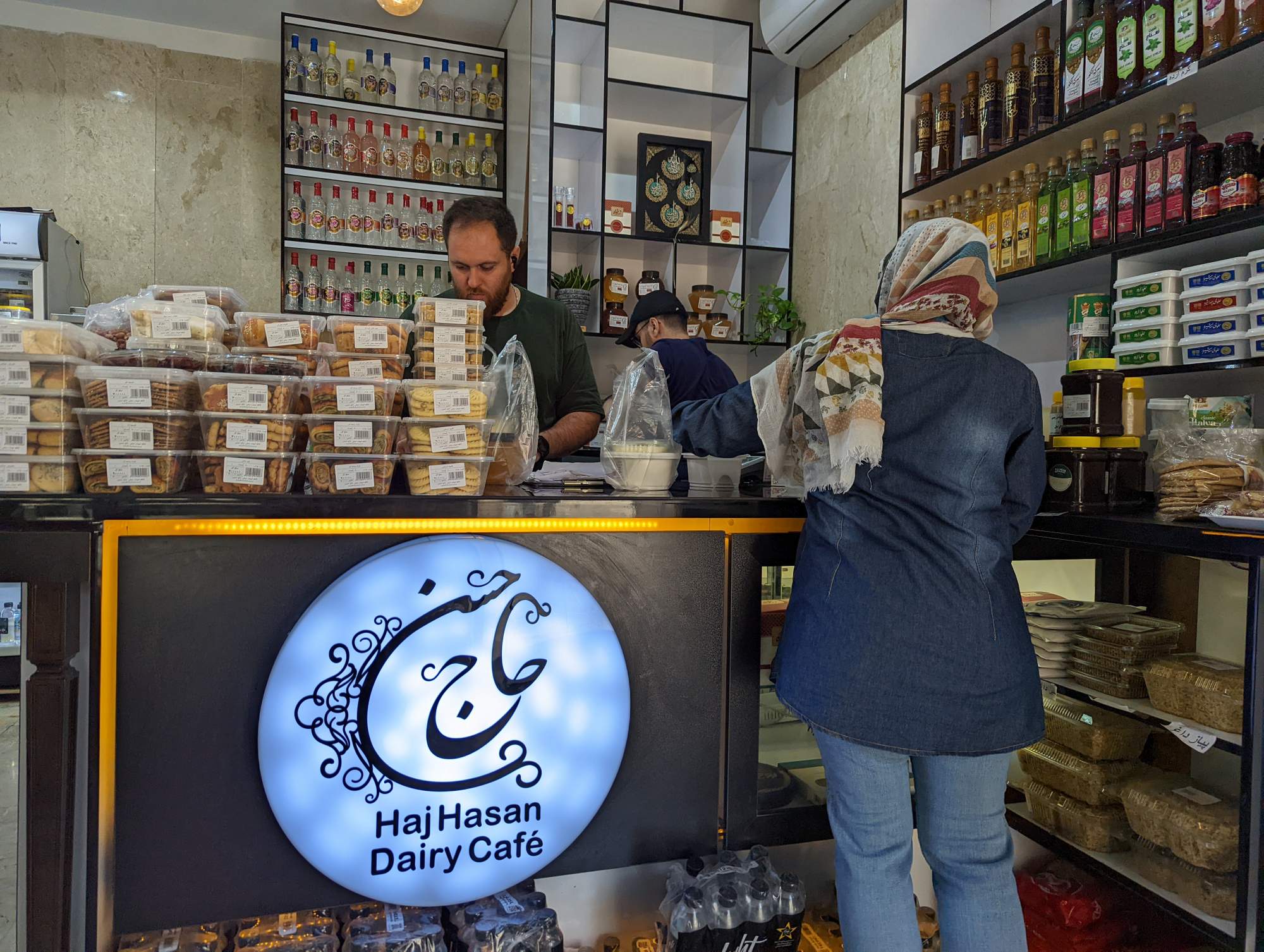 Further up the hill, we enter “Haj Hasan Dairy Cafe”, signage again in Roman characters.