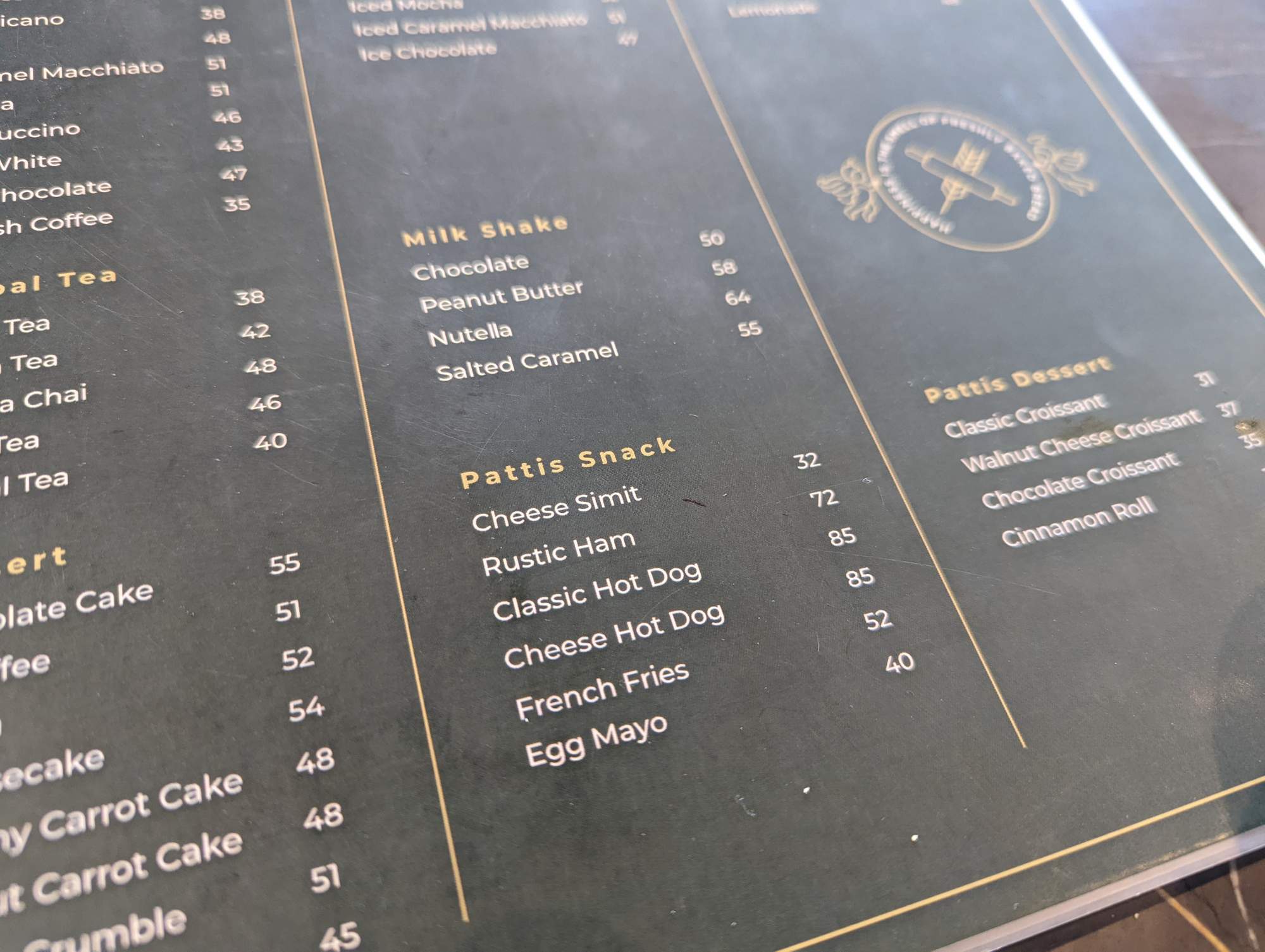 At Patiss Cafe & Bakery, the girl behind the counter greets us by rattling off a list of sandwiches: “Bacon turkey, bacon with tomatoes, bacon and cheese …”
