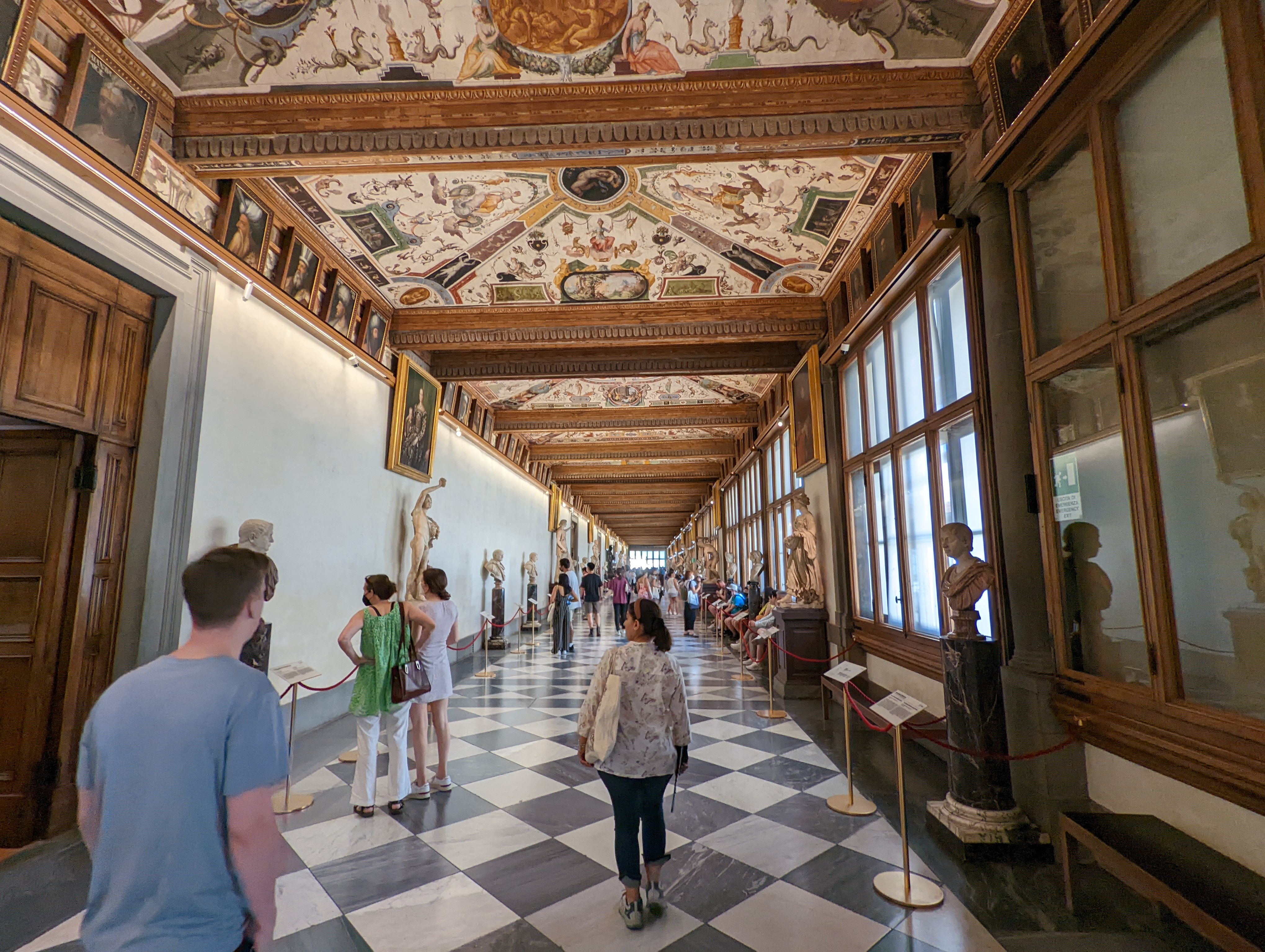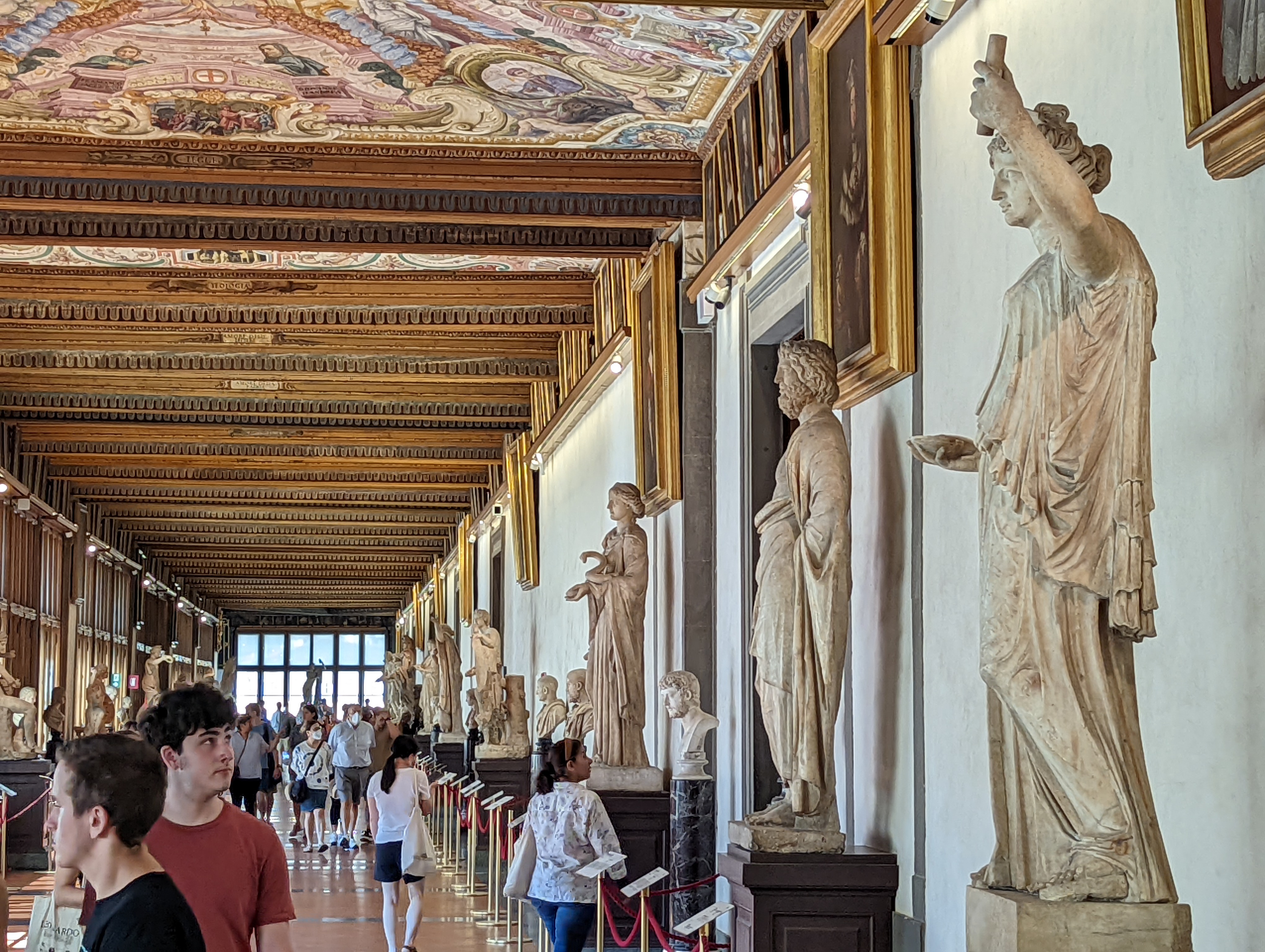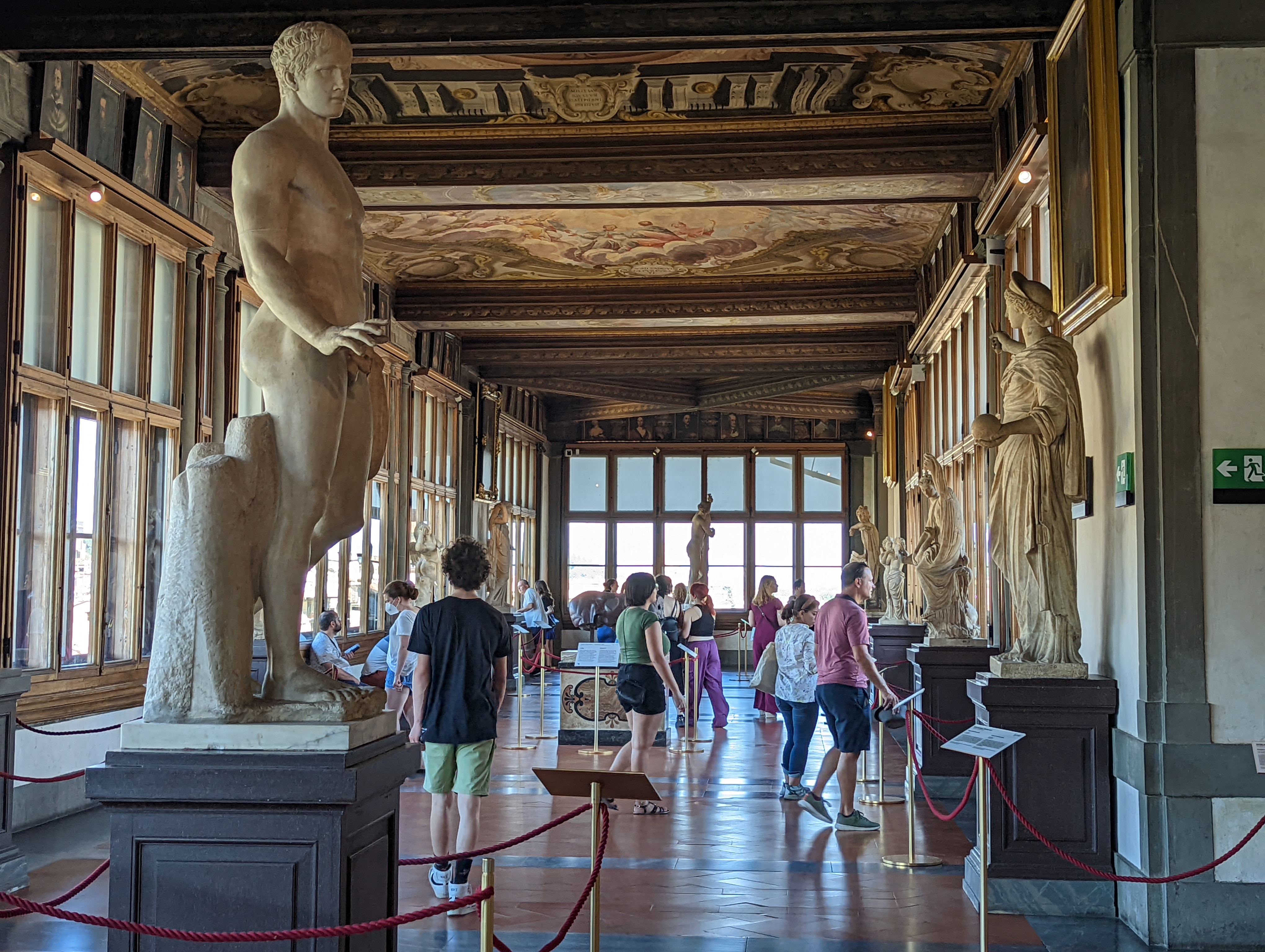 The Uffizi’s hallways are lined with hundreds of life-size or larger sculptures of dead men and Greek action heroes.