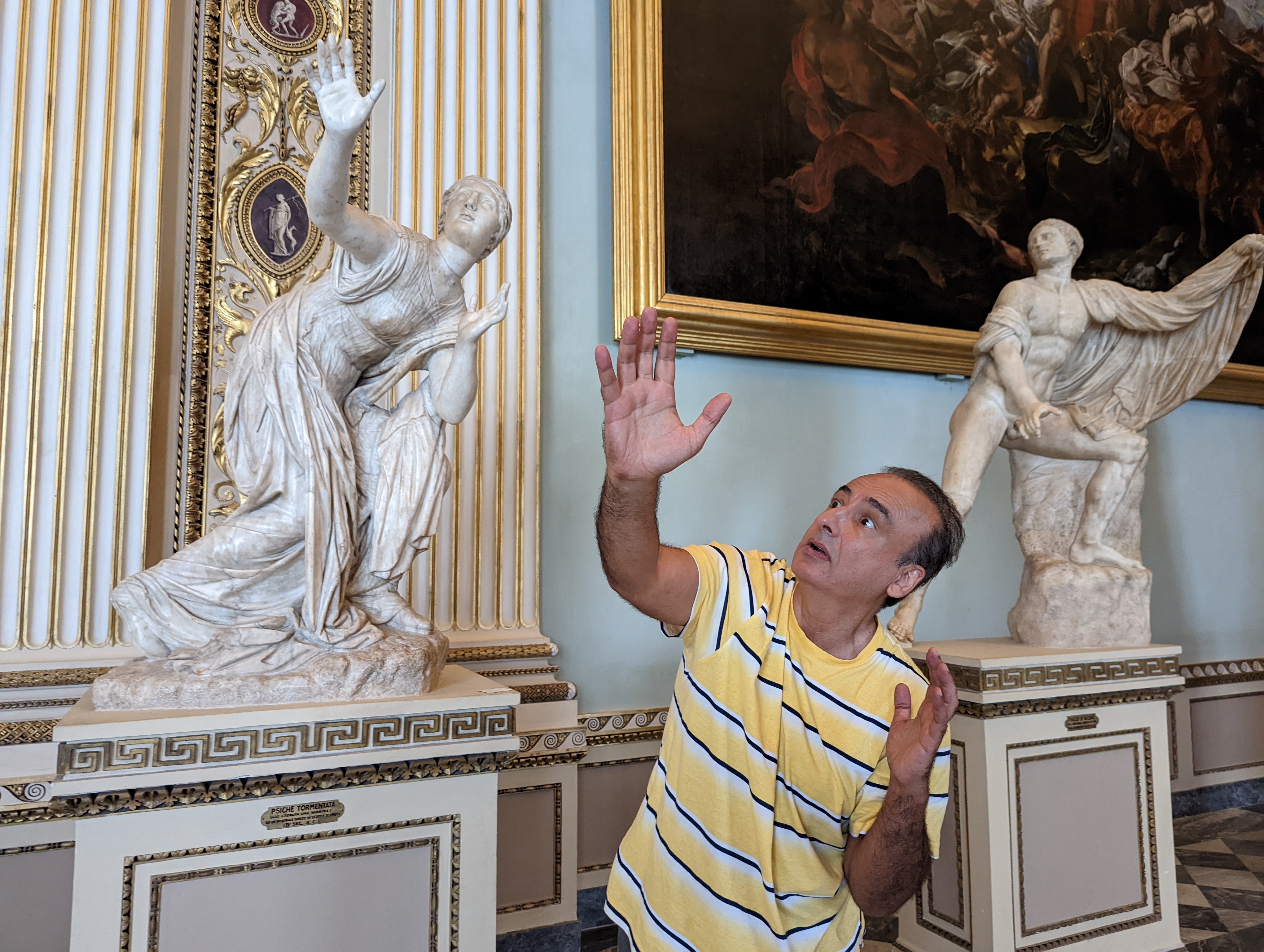 I got so bored; I started acting out some of the sculptures for the camera, to the amusement of fellow tourists who then started imitating me.