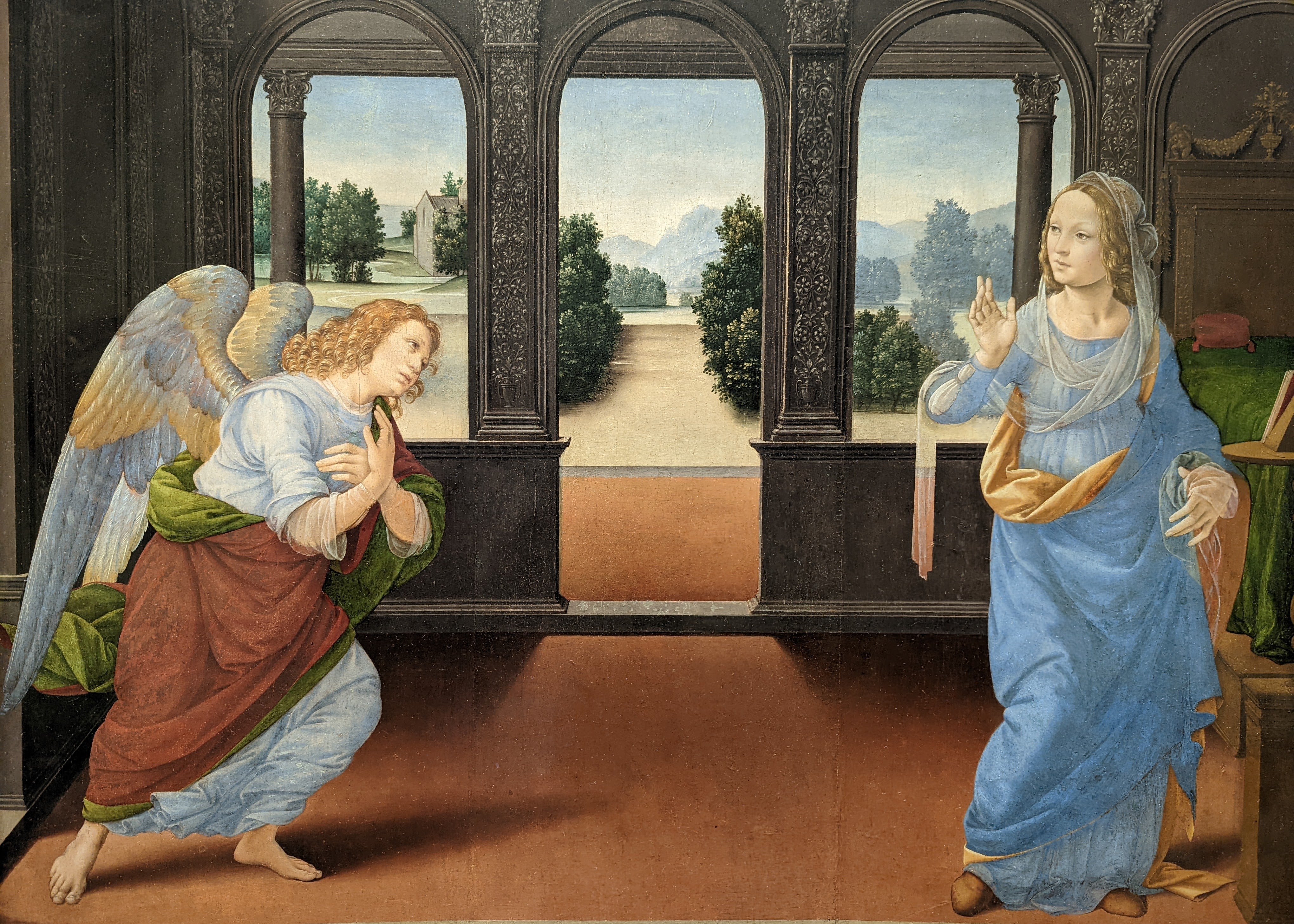 No, I’m pretty sure Mary wasn’t in an immaculately maintained Tuscan garden when Michelangelo chanced on Angel Gabriel’s visit.